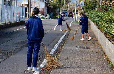 中庭の草むしりや通学路の清掃、校舎内のぞうきん掛けなどを行いました。