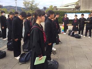 12月3日(火)7時28分。見送り、ありがとうございました。ハラハラドキドキの修学旅行が始まりました。実り多い充実した修学旅行になるように、生徒、職員ワンチームとなってがんばってきます。
