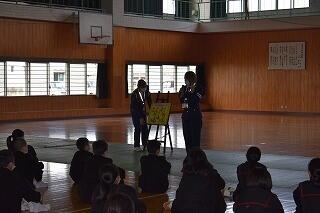 最後に、冬休み中の学習面や生活面などのお話があって集会は終了しました。