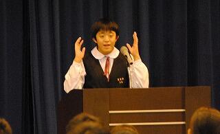 英語の暗唱部門で地区2位に入賞した1年生は、堂々とした表現でした。