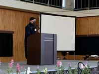 その後、校長先生が「夏休みに1つのステップを登り成長してほしい」と話をされ、集会が終わりました。