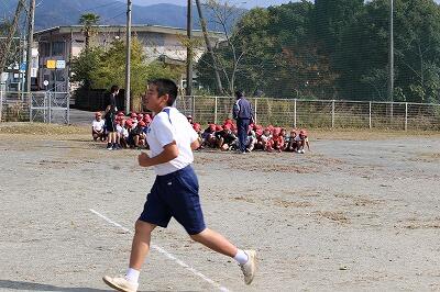 午前中の体育は、2年生がグラウンドで持久走を行っていました。