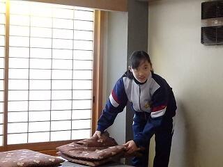 福祉施設ではシーツの整理をしたり、幼児の相手をしたり。