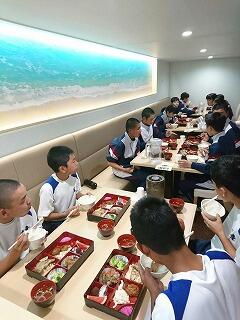修学旅行2日めです。朝御飯はバイキングでした。品数が沢山あって悩むほどでした。朝からカレー?