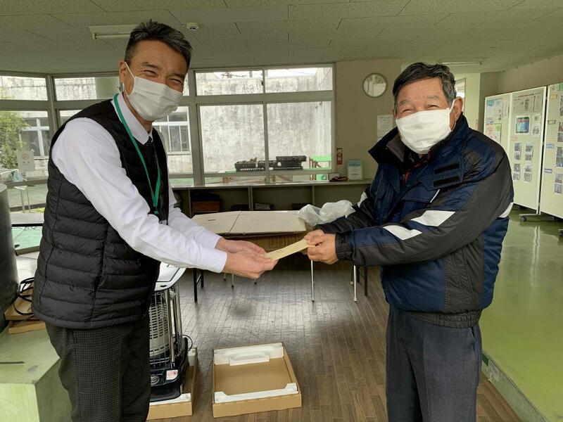 国土交通省発注の向江排水機場機械設備(発電機・ポンプ操作盤)更新工事を受注された株式会社ミゾタ(鹿児島市)様より、地域貢献として「LEDオートライト」を寄贈していただきました。3月17日(木曜日)に会社関係者、えびの市関係者、学校関係者が参加して、校長室で寄贈式が行われました。