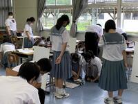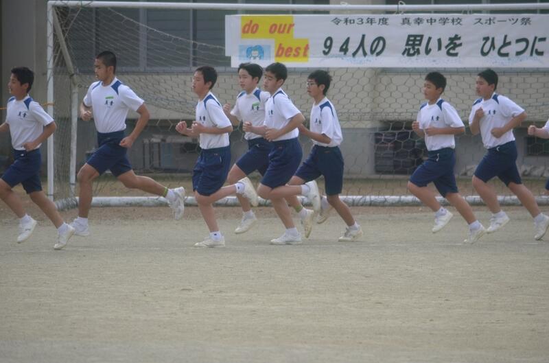 学校では、先週から体育大会の練習が始まりました。国や県・市の感染対策マニュアルに沿って対策を講じて練習を行っています。2メートル以上の距離を確保して行進したり、暑い中マスクを着用したりするなど大変ですが、生徒たちは全力で頑張っています。