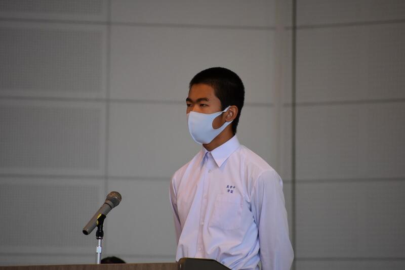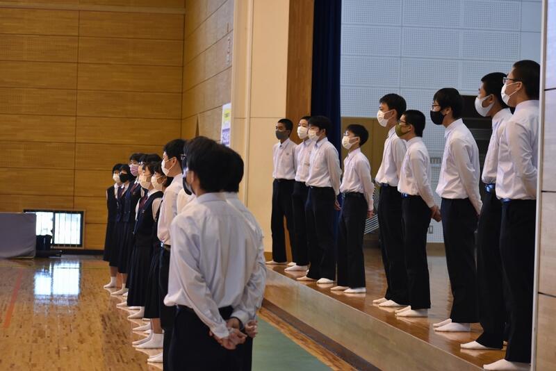 当日は、生徒ひとりひとりが、自分の考えた決意表明を行い、その後、立志の誓いを全員で述べました。参加してくださった保護者の前で緊張しながらも、堂々と発表することができました。(1年生はオンラインで教室から参観しました。)