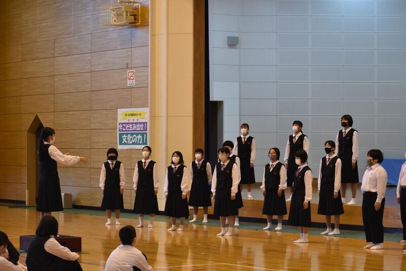 新型コロナウイルス感染対策のため、部活動のパフォーマンスなど出来ませんでしたが、それぞれが工夫して紹介や発表が出来ました。1年生も真剣なまなざしで話を聞いていました。