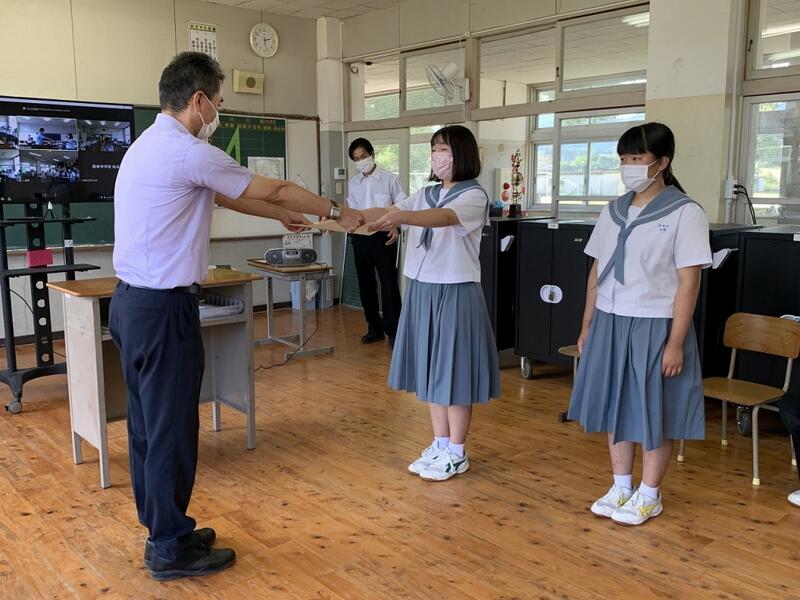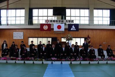 今回の入学式は、新型コロナウイルス感染防止のために内容を簡素化し、参加者を新入生と保護者のみに制限して行いました。参加者は少なかったですが、「新入生点呼」のときには新入生全員、大きな返事が会場に響き渡り、頼もしく感じました。これからの中学校生活で、たくさんの思い出を作ってほしいと思います。