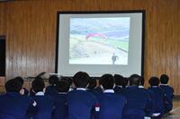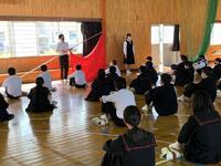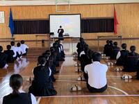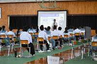 その後、宮崎県青少年育成県民会議からメディア安全指導員(福重真諭美氏)を派遣していただき、「メディアと健康~成長期の君たちへ~」という内容の講話をしていただきました。生徒にとって非常にわかりやすい講話であり、真剣に話を聞く姿が印象的でした。