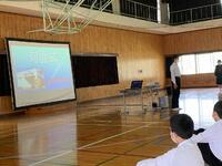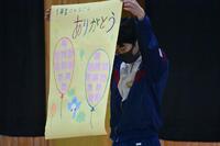 その後、体育館で3年生の足跡をたどる「ヒストリー上映会」を行いました。修学旅行などの思い出写真をスライドショーで流し、3年生の中にはうっすらと涙を浮かべている生徒もいました。最後に、3年生代表がお礼の言葉を述べ、終了しました。