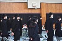3月16日(水曜日)に、第75回卒業式が行われました。新型コロナウイルス感染拡大防止のため、入場者の制限や内容の短縮などを行い実施しました。
