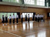 そこで、6月1日(水曜日)に、大会に参加する生徒達への激励式を行いました。各部のキャプテンが大会に向けての抱負を堂々と発表して、その後、女子バスケ部のキャプテンが、素晴らしい内容の選手宣誓を行いました。