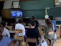 ▼参加された保護者の様子 ▼1,3年生は各学級で参加 ▼オンライン配信画面