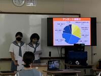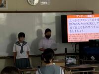 会では、まず保体委員会が、本校の実態について調べたアンケート結果を発表しました。グラフなどを使ってとてもわかりやすくまとめてありました。やはり本校でも、スマホやゲーム等の使用に関して課題がたくさんあることが分かりました。