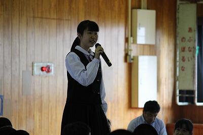 3年生の実行委員の人たちが、全校生徒に説明や役員としての体験談などを話しました。