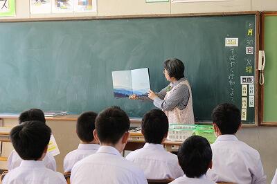 1年生から3年生まで、本を片手に語られる方々をしっかり見ながらストーリーを聞きました。
