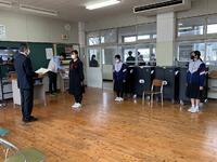 さて、午後の全校集会は、感染対策のためオンライン方式で行いました。最初に各学年の代表生徒が2学期前期の反省を発表しました。発表の内容は次の通りです。発表した生徒は事前に原稿を考え、しっかりとした態度で発表しました。