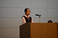 代表生徒4名がそれぞれ「世界平和」「男女共同参画」「児童虐待」「インターネットと人権」をテーマとして発表しました。日常の中から感じられる課題について、それを解決するために自分は何ができるか具体的に考えていました。原稿をほとんど見ず、堂々とした発表が素晴らしかったです。