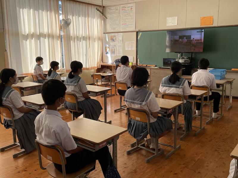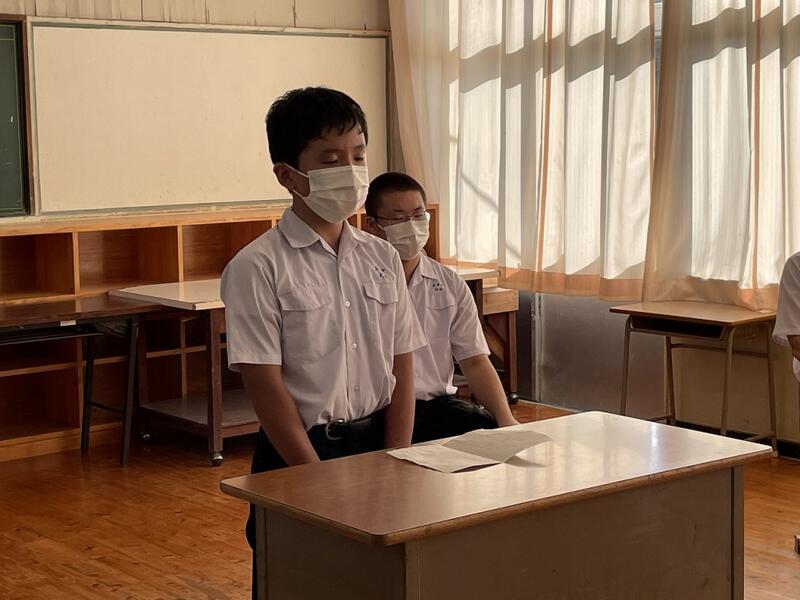 1校時に夏休み明け集会を行いました。今回は、感染症対策のために、ZOOMによるオンライン集会の形で実施しました。少人数教室を配信スタジオとして設営し、そこから各教室の生徒たちに向けて、代表生徒の話や職員の話などを配信しました。