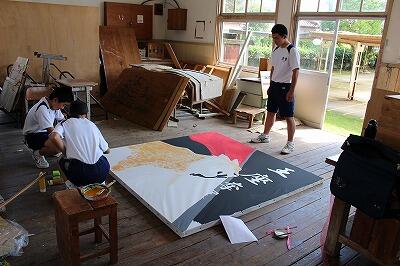 学校では、3年生の応援団が中心となったダンスの練習や掲示物の作成が行われていました。
