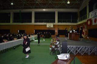 3月16日(月)、新型コロナ感染症拡大防止の観点から、縮小して実施しました。一人一人の座席間隔を広くとったり、時間短縮を図ったりと考えられることは全て取り入れて実施しました。久しぶりに登校した生徒たちは、朝、流れの確認を行った後すぐ本番というとてもハードなスケジュールにも見事に応えてくれました。記憶に残るすばらしい卒業式となりました。