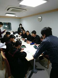 今日一日のバスの旅も終了。フェリーに乗り込んで荷物を収め、班長会を行いました。