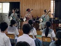 前半は「風が運んだ日本のメロディー」(日本各地の民謡等)やふるさとの民謡など、たくさんの曲を披露してくださいました。また、後半は、人気の話題曲や和楽器体験コーナーなど、生徒たちが楽しむことのできるプログラムでした。