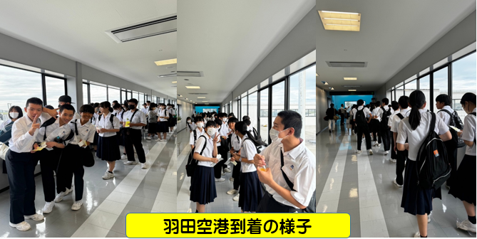 羽田空港に到着しました。みんな元気です。お昼からは、東京都内の班別自主研修です。どの班も、計画をしっかり立てていました。協力しながら、みんな無事に行きたいところに行けますように!