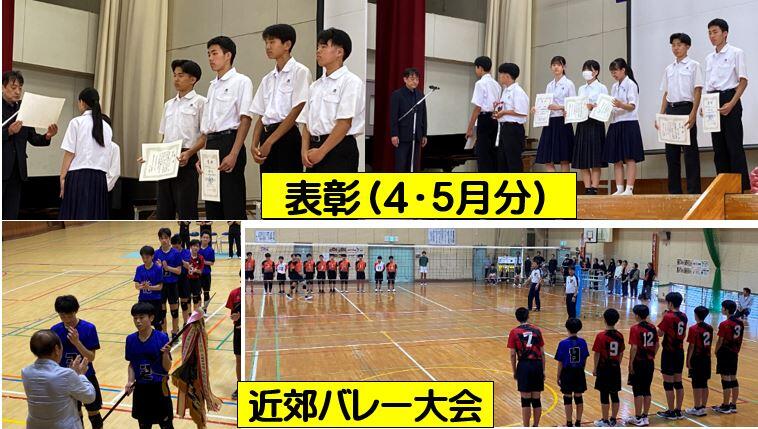 GWなどに行われたスポーツ大会関係の表彰を行いました。中でも、5月11日に実施された西都近郊バレー大会では、男子バレー部が17年ぶりの優勝を飾りました。インフルエンザ等で主力選手等が5人不在の中、残りの選手7人が総力戦で勝ち取った優勝はとても価値のあるものだと思います。日頃の練習のたまものだと思います。