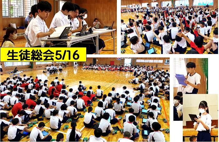 5月16日(金)に令和7年度の生徒総会を実施しました。本年度からは総会の効率化に挑戦し、前年度の承認、本年度の年間計画や予算の承認については事前に各教室にてオンライン形式で承認を済ませ、この日はメインテーマのみについての協議を参集形式で行いました。