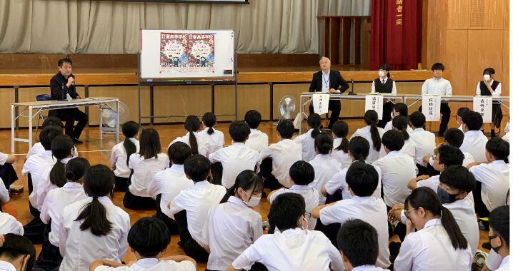普通科文理科学コースの藏留遥香さん、情報ビジネスフロンティア科の佐伯征哉さん、福祉科の武﨑夏加さんの3名(妻中の先輩)が来てくださり、含蓄のあるお話をしてくださいました。今後の進路選択に大いに役立つ時間となりました。