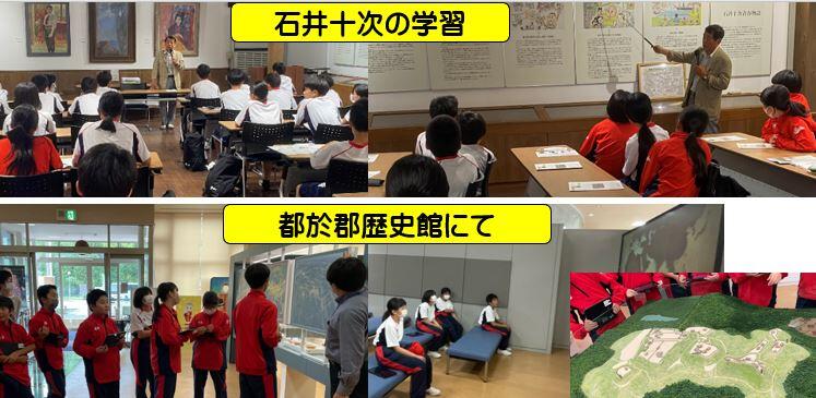 本年度より、1年生のさいと学(上半期)において、地域の歴史や文化、産業などを探究する「ふるさと探訪」をスタートさせました。西都中学校再編後を見据え、妻中校区以外にも2コースを設け、次の5コースを設定して探究を行うようにしました。来年度はこれに「三納・三財コース」を追加し、西都中開校後に備えたいと考えています。
