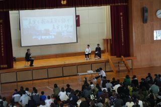 12月8日、新入生説明会が行われ、来年入学予定の小学校6年生が見学に来ました。本校では生徒を主体とした行事を行っており、この説明会も生徒会が中心となって2週間以上前からプレゼンを用意していました。校長先生との対話形式の学校紹介、生徒会の各専門委員長による学校生活の説明が行われました。生徒会の皆さん、お疲れさまでした。