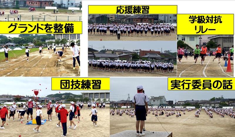 本日は、午前中に学級対抗リレーなどを予行練習として実施しました。午後は応援パフォーマンスバトルの練習などを実施しています。