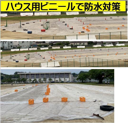 明日・土曜日は大雨の予報です。日曜日の本番を生徒達に楽しんでもらおうと、PTAや保護者の方々が動いてくださり、ビニルハウス用のビニルを集めてくださいました。