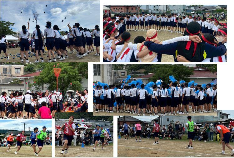 今年は「妻中学校」としては最後の大会となります。グランド改修工事を控えている関係で初めての5月開催とし、プログラムの内容も「運動の得意な生徒も苦手な生徒もすべてが活躍できる種目」を生徒たちが考えて設定し、しかも雨天続きの場合は市民体育館でも実施できるハイブリットな構成にして臨みました。さらに、応援合戦も場所の入れ替えや「応援パフォーマンスバトル(団全員でのダンス)」に挑戦するなど、とても魅力的な内容でした。