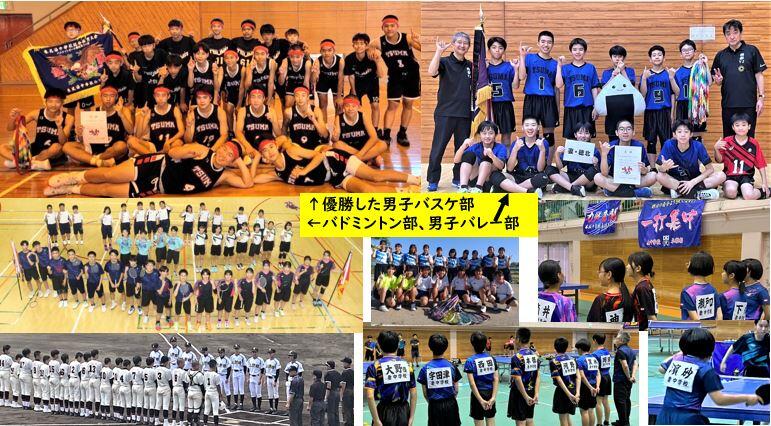 西都児湯地区の中学校総合体育大会(中体連)が上記の期間で行われました。多くの3年生にとっては最後の大会ともなりますので、どの選手も高い意識で大会に臨み、最高のパフォーマンスを発揮してくれました。優勝旗を手にした部、県大会出場権を手にした部、惜敗した部…結果は様々ですが、とても素晴らしいプレーでした。お疲れさまでした!