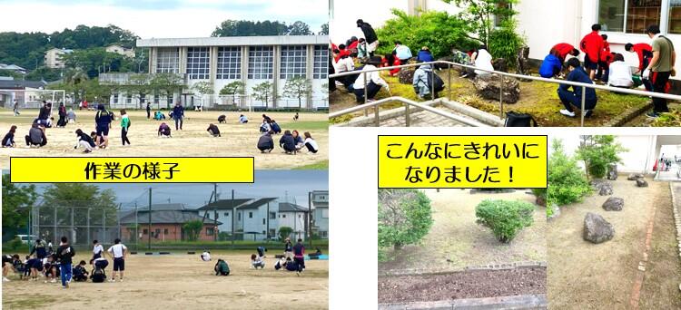 5月19日、恒例のPTA親子奉仕作業を行いました。日曜日の朝6:30からの作業でしたが、約80%の方々が参加してくださいました。今年は、除草作業に加えて溝の泥上げ作業も行いました。PTA役員の方々が段取りよく作業の割り振りや重機の準備なども行ってくださり、生徒たちも皆熱心に作業を行ってくれ、予定の作業を終えた時には見違えるように校庭がきれいになりました。参加してくださった方々に感謝したいと思います。ありがとうございました。