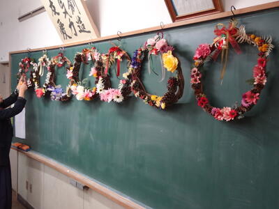 12月15日(金)に太田教頭先生が企画して家庭教育学級でクリスマスリースづくりを行いました!講師には本校に毎月、生け花を活けてくださっている横山佳代子様をお迎えし実施しました。横山様が準備してくださった材料を使用して素敵なクリスマスリースが完成しました!