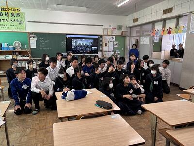 県立一般入試が終わり、少しほっとした3年生の皆さんを在校生が送るために、送別行事を行いました。大繩大会やクイズ大会で交流を深めました。お世話になった先生方からのビデオメッセージに3年生は見入っていました。
