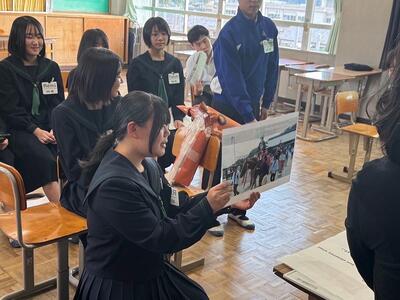 1年生は大テーマ:郷土を見つめなおすを設定し、1年間の前半は「ふるさと探訪」を行いました。今年は杉安井堰、記紀の道、石井十次の探究に加え、地元の企業訪問を行いWINTを訪問し、地元でつられているものづくりも探究しました。1年生の総合的な発表の時間では、各班工夫しながら発表を行ってくれました!
