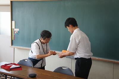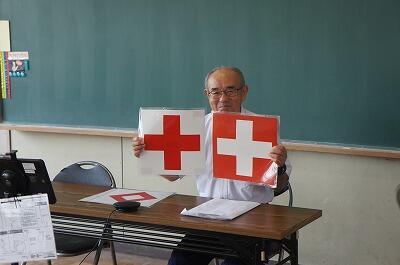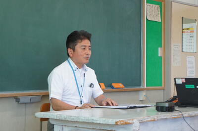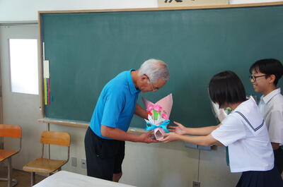 8月25日(月)に2学期の始業式を行いました。感染症対策及び熱中症対策のためオンラインで行いました。式の前には日本赤十字奉仕団委員長佐々木様より日本赤十字のバッジの贈呈を行っていただきました。また、宮崎県日赤有功会の田爪様から赤十字の活動や歴史についてお話をいただきました。