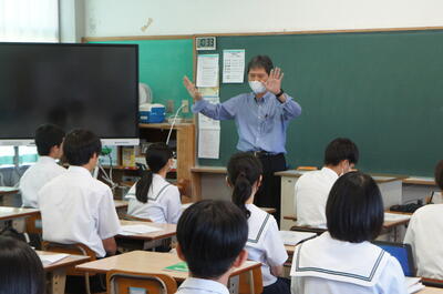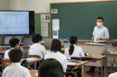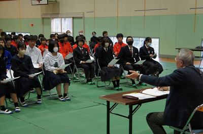 6月12日(木)、19日(木)の2週間にわたり、全校生徒を対象に私立高校説明会、県立高校説明会を行いました。県立高校説明会の妻高校の説明には、卒業生の先輩たちも参加して説明してくれました。