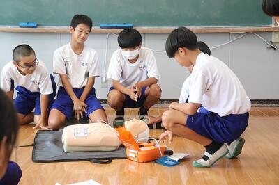 8月27日(水)に避難訓練と救急救命の講習会を行いました。消防署より3名の講師に来ていただき、各学年とも実習訓練を行いました。1年生は初めての実習になりました。