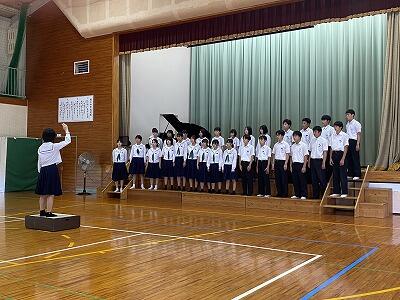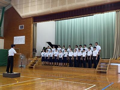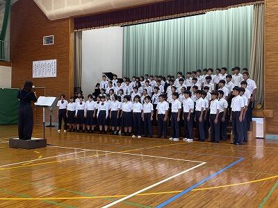 9月24日(火)に合唱コンクールリハーサルを体育館で行いました。全校合唱の後、各学年の合唱曲を披露しました。