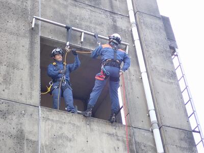 1月14日(火)に防災安全教室を行いました。西都消防署より4名の隊員の皆様にお越しいただき、火事による避難訓練と消火器体験、煙体験を行いました。