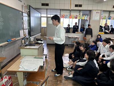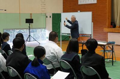 11月29日(金)に第2回先輩の声を聞く会を開催しました。これは穂北児玉久右衛門の絵本をつくる会の事務局の皆様が、穂北にゆかりのある先輩たちをお呼びして、その方の生き様やこれまでの経験を生徒たちに伝えてもらおう始まった会です。昨年度はWINTの堀江勝人様に来ていただきましたが、今年は穂北中学校卒業で、長崎県で澤谷コンサル法務事務所を経営されている澤谷修造様に来ていただき、お話をしていただきました。