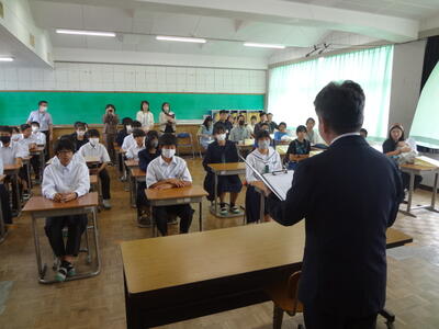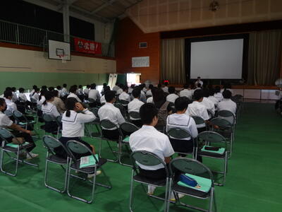 6月22日(木)に県立高校説明会を行いました。先週は私立高校説明会を聞き、今回は県立高校の説明です。各学校、学科の強みや特色、3年後の進路先等について説明がありました。生徒たちは、メモをとりながら積極的に参加する態度が見られました。