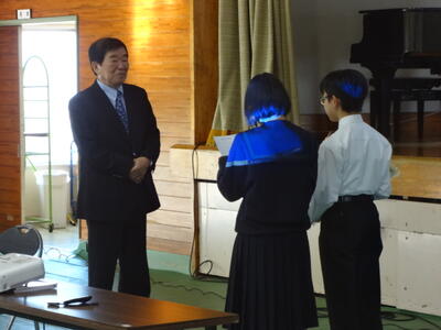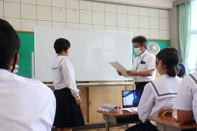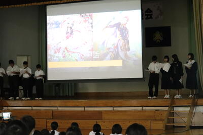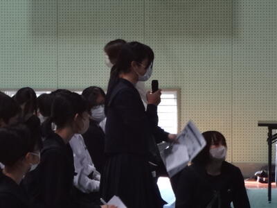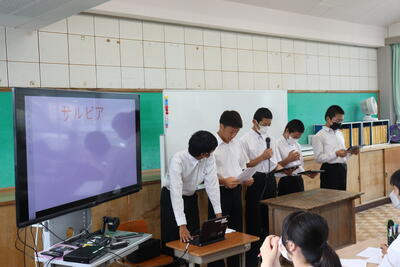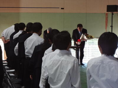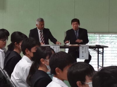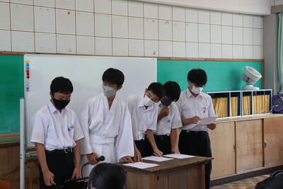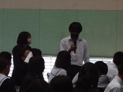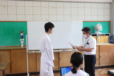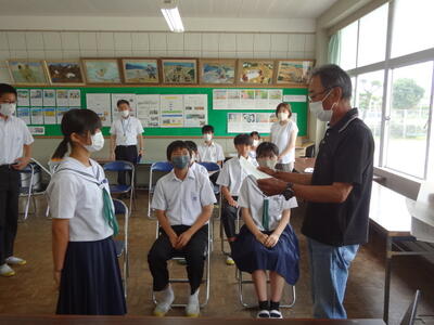 6月21日(水)のほなみの時間を活用して、表彰集会を行いました。今回は西都市バレーボール大会入賞と西都・児湯地区中学校総合体育大会の入賞者の表彰を行いました。水泳競技個人優勝、バドミントン競技準優勝の2人の表彰となりました。県大会での健闘を祈ります。